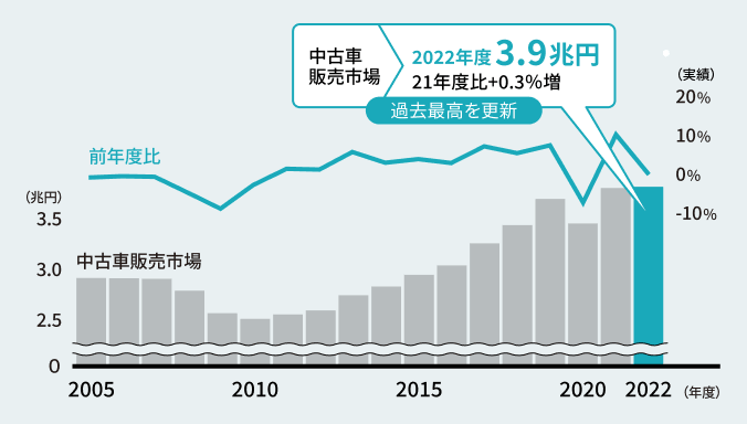 引用:株式会社帝国データバンク「中古車販売市場」動向調査(2022年度)(2023年7月27日)